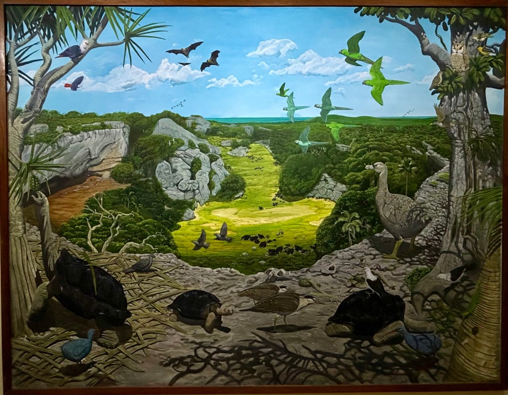 At the museum of the François Leguat reserve, we learned one very clear lesson: humans are the worst predators. Jacek would argue that French humans are a bit worse — because just like what happened in La Réunion with the dodo (and in Île Maurice too), they were responsible for the extinction of another extraordinary bird: the solitaire. But not just that. A drawing at the museum shows all the species wiped out by humans (French, specifically) on the island, and the list is longer than twenty species.