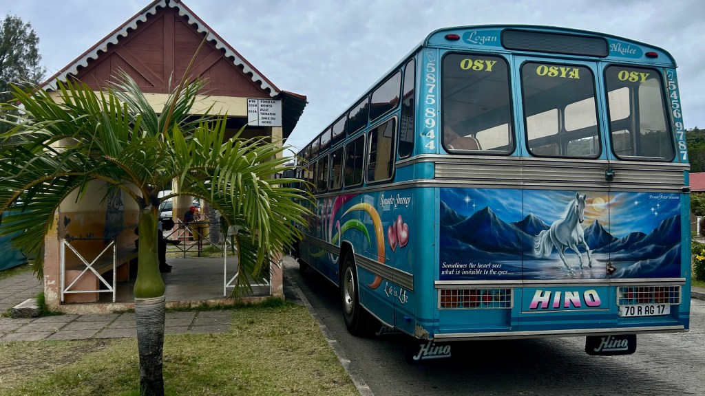 Climate: In October, it’s reasonably warm. I always go out covered in sunscreen and wearing a straw hat. But the sky remains a bit cloudy and the wind has been strong since we arrived. The island seems very dry, as seen in the vegetation of parched shrubs and the dust on dirt paths (but not on the roads, which is very different from a place like Madagascar). I discussed the weather with a guide who told me we were entering summer and also the dry season, which is exactly the opposite of the climate in Réunion where we are coming out of the dry winter into the humid summer. Curious about the contradiction, I later checked, and Google confirmed that the guide was not exactly a climate expert, as in reality the rainy season is about to begin — which the abundant clouds indeed suggest.