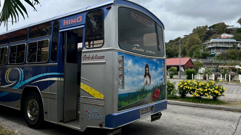 Les bus: ils existent et sont très utilisés. Ils sont d’ailleurs exceptionnels, tous peints en mode vintage des années 50 avec un message souvent centré sur l’amour qui semble aussi être le petit nom de chaque véhicule. Ils fonctionnent on peut les utiliser mais il n’y a pas d’horaire affichés aux arrêts ni nullle part ailleurs (je ne les ai pas trouvé en tous cas!) mais s’ils sont nombreux avant neuf heures et assurent essentiellement le transport des écoliers ils deviennent rares après et le dernier bus part à 18h.